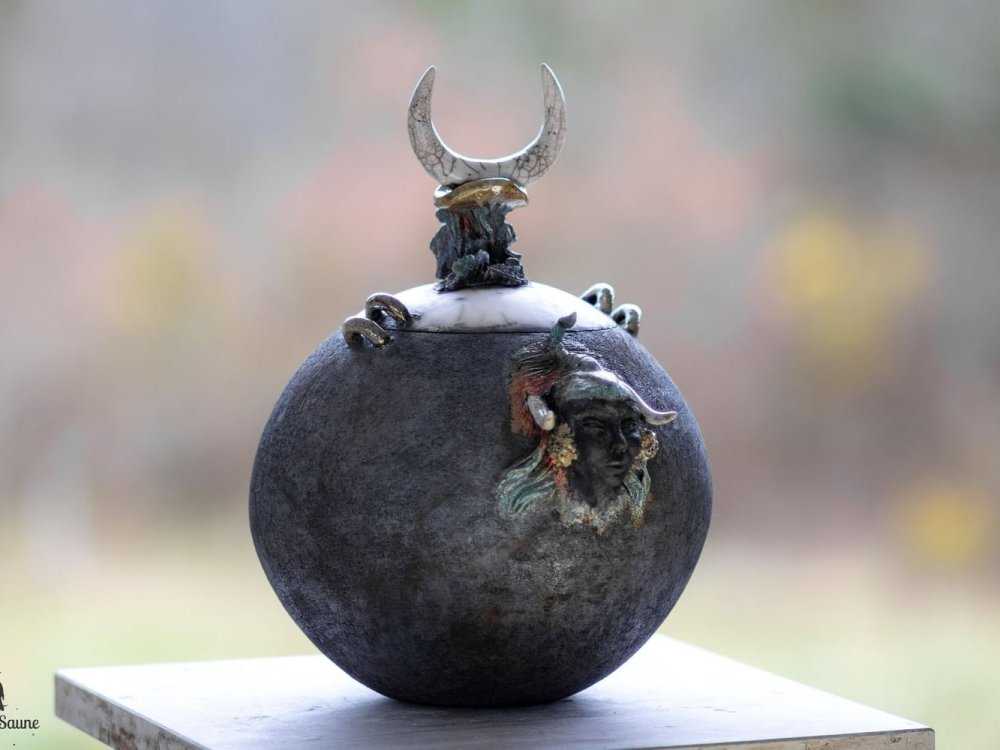 Créations utilitaires ou sculpturales, un soupçon fêlées, ses céramiques raku subissent un fort choc thermique à la façon raku japonais et un enfumage à l’africaine. Violeta prend plaisir à offrir une place de choix au hasard, à vous de laisser votre regard scruter la matière pour y découvrir les vôtres. Des histoires aux travers des chemins qui sillonnent la matière sont racontées.